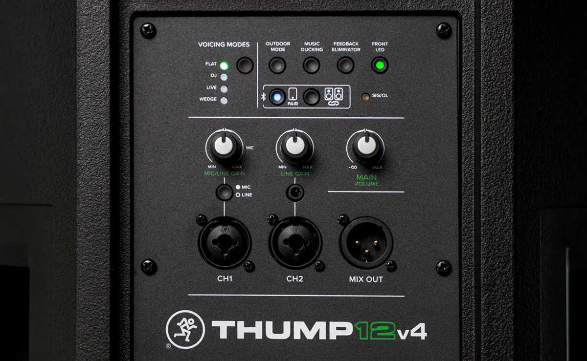 Die professionellen Mackie Thumpv4 Aktivlautsprecher sind die lauteste,tiefste und klarste Lösung für jeden Live-Sound-Techniker, unabhängig von seinem Erfahrungshorizont. Mit SoundCheck DSP und seinen Voicing-Modi für unterschiedliche Anwendungen führst du auf Tastendruck einen Soundcheck durch und richtest deine Anlage mit weiteren Funktionen wie MusicDucking, Feedback Eliminator und dem Outdoor Mode im Handumdrehen ein.