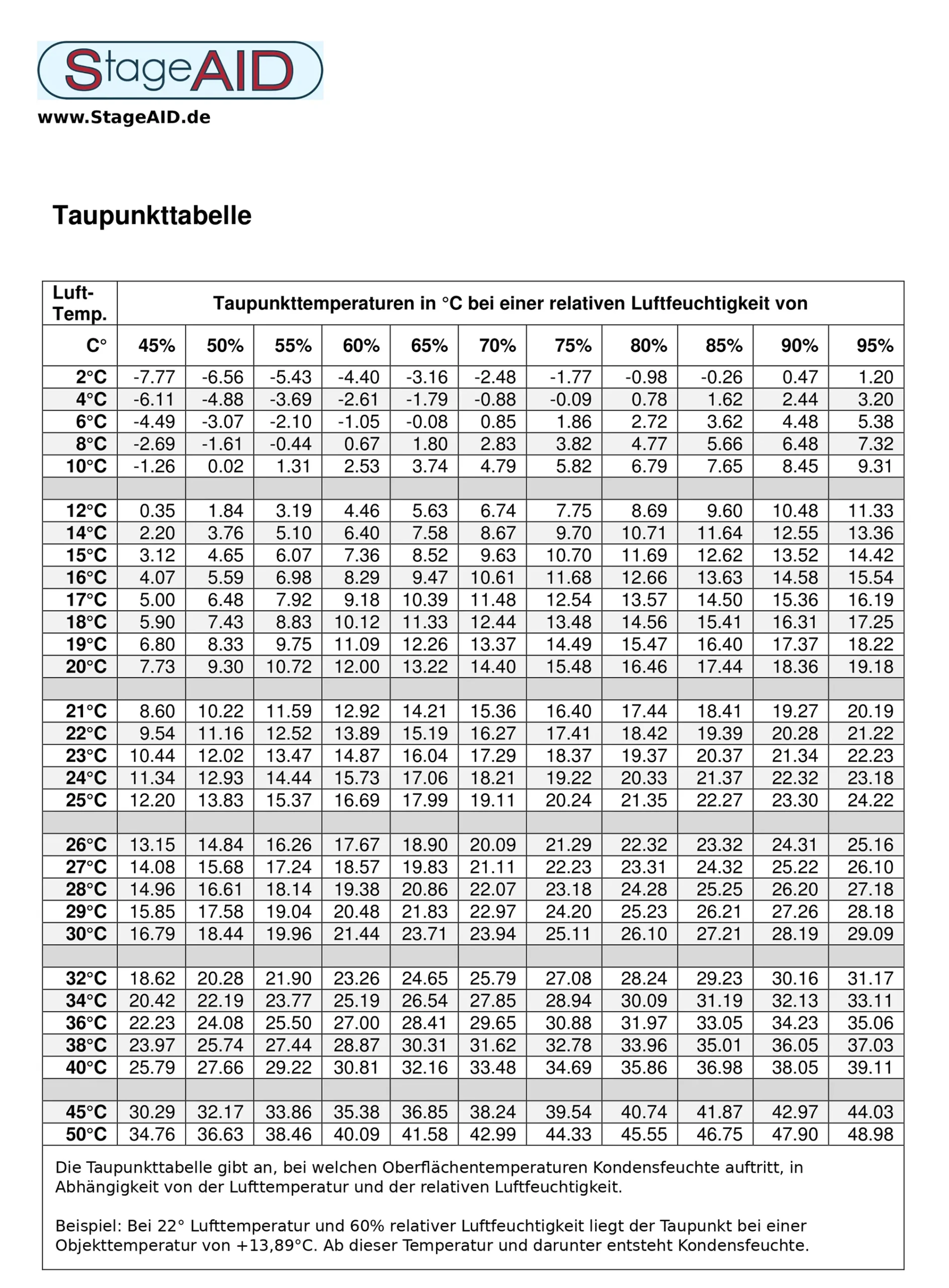- Alarm: > 70 % rF (Rost/Schimmel sind dann nur eine Frage der Zeit)