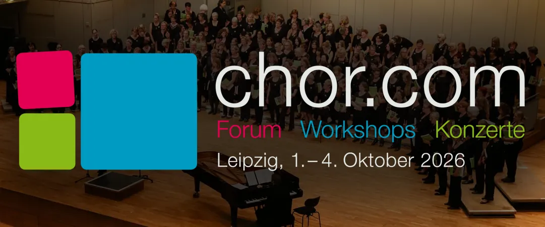 Die chor.com findet 2026 vom 1. bis zum 4. Oktober statt und beinhaltet rund 150 Workshops, drei hochkarätige Masterclasses für Chorleitende und ein Forum, in dem sich rund 100 Aussteller aus ganz Europa mit ihren Angeboten präsentieren. Seit 2011 hat sich das Veranstaltungsformat zur zentralen Plattform für Chorleiter*:innen, Chormanager*innen, Musikpädagog*innen, Kirchenmusiker*innen, Verleger*innen, Komponist*innen, Sänger*innen und alle weiteren an Chormusik Interessierten entwickelt.